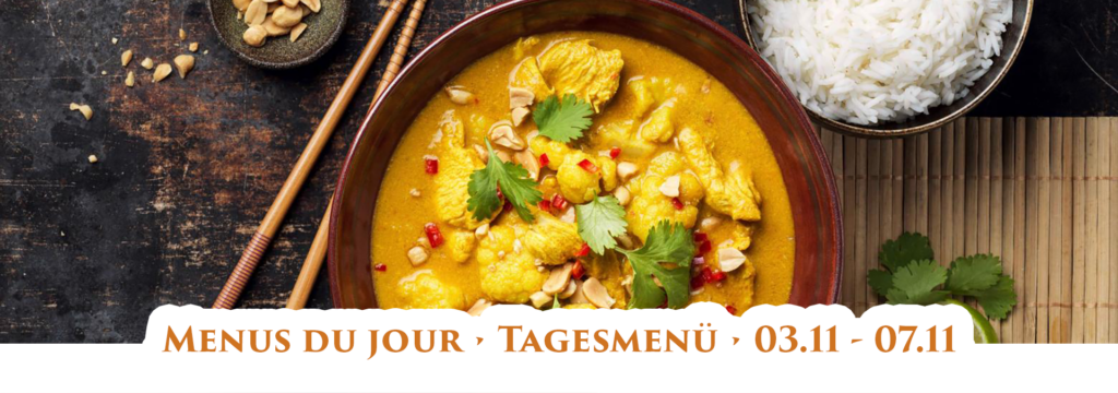 Emincé de volaille au curry et au lait de coco, riz basmati